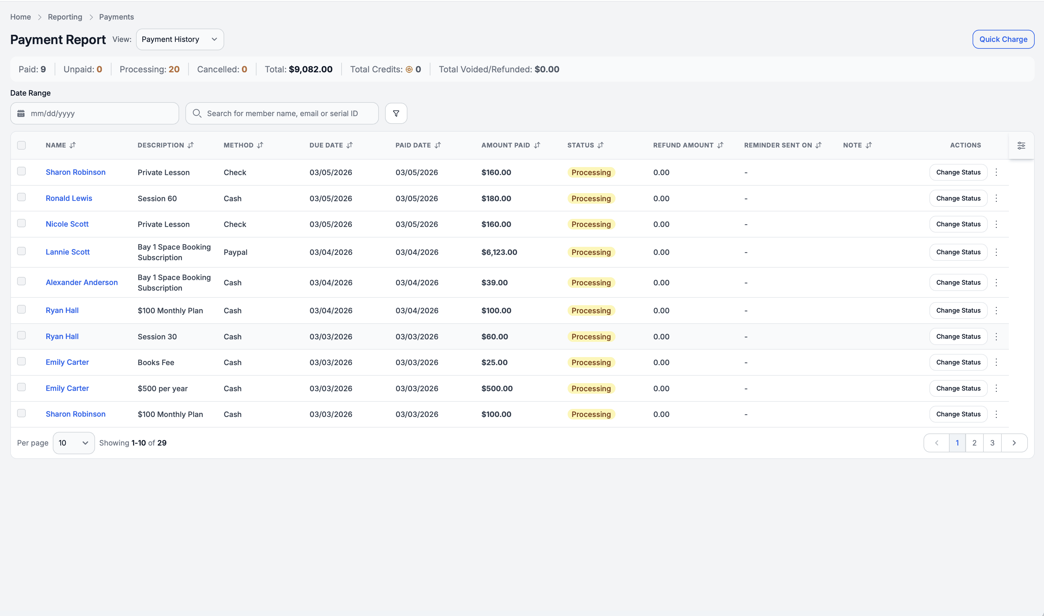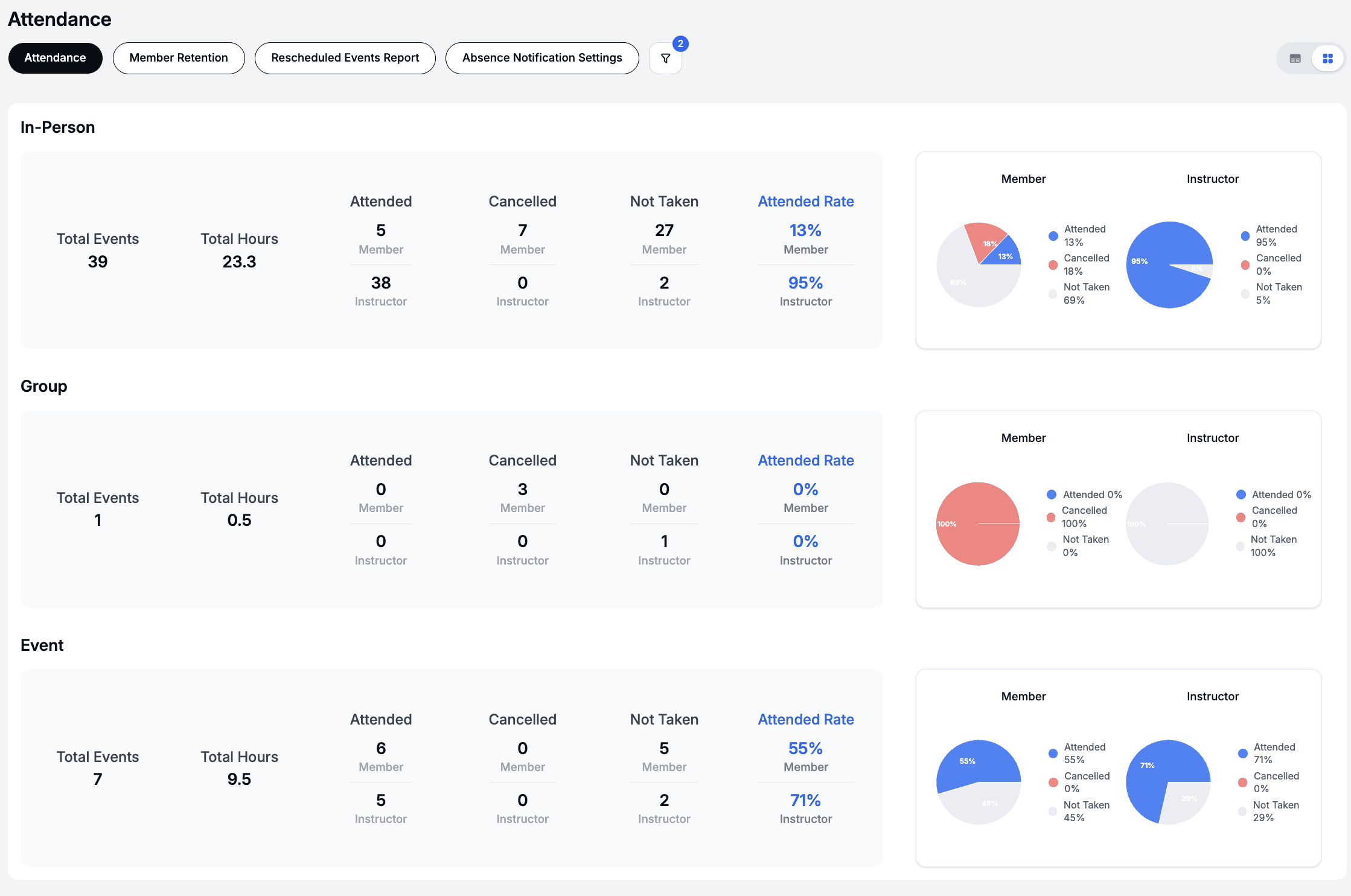 Attendance history, payments, progress, contracts, and communication — all in one place for every member you serve.