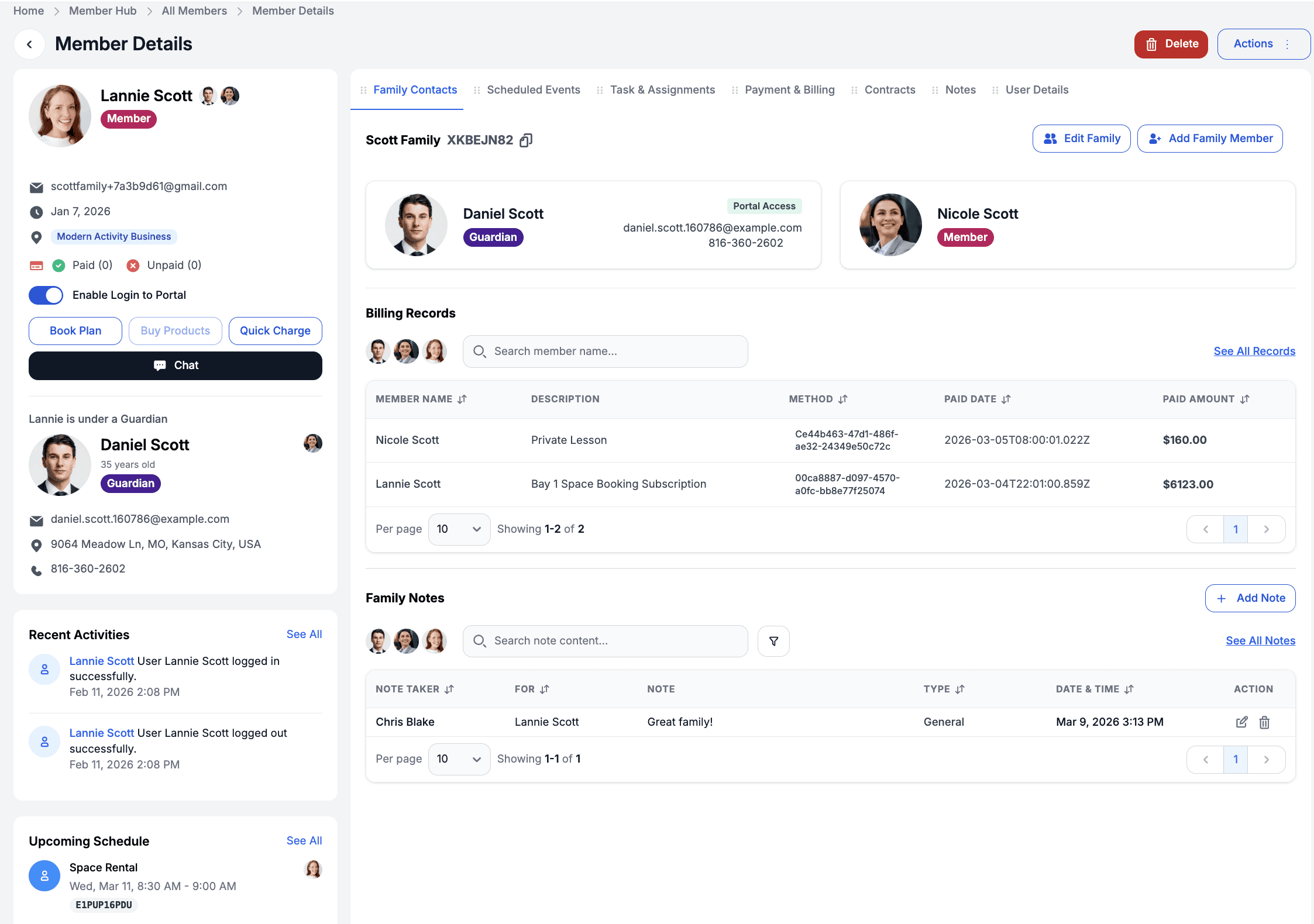 Attendance history, payments, progress, contracts, and communication — all in one place for every member you serve.